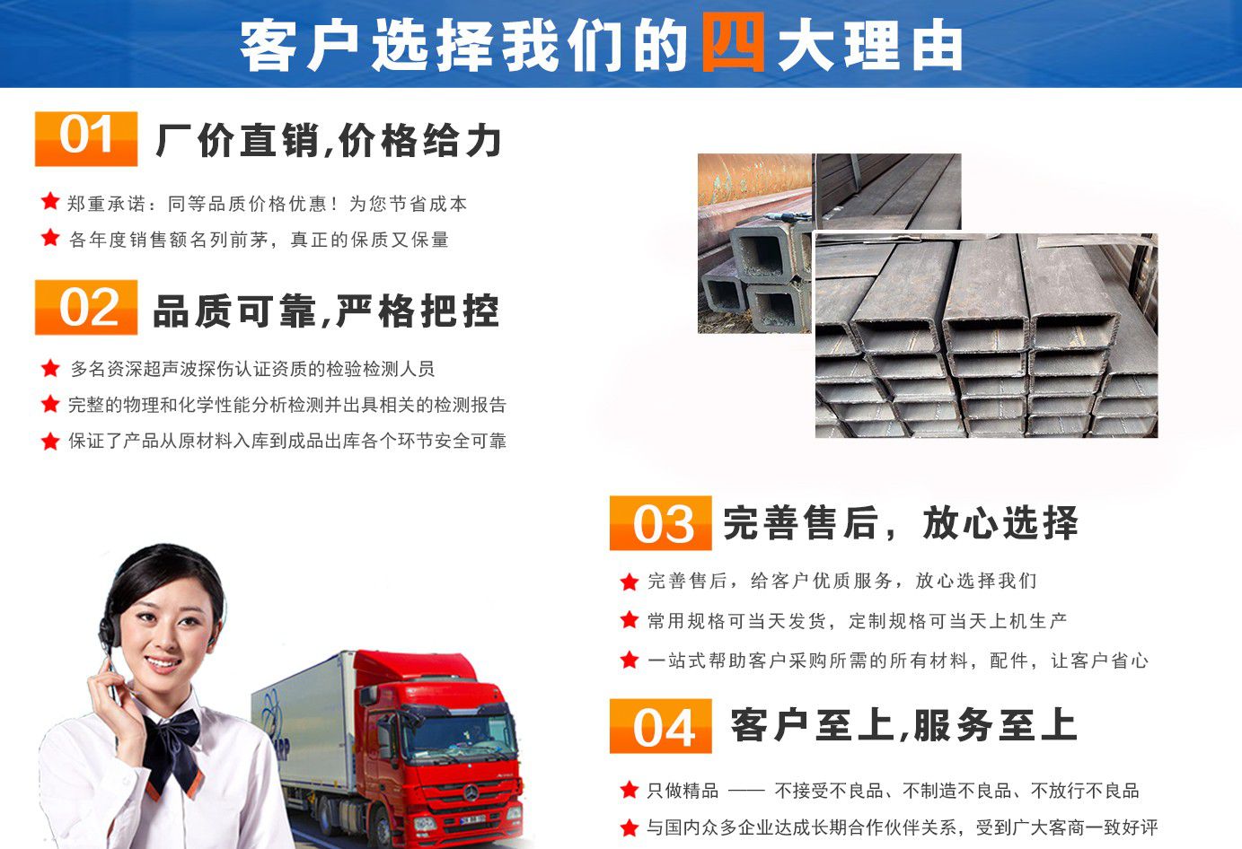 無錫盛灝特鋼有限公司長期銷售Q355B方矩管,鍍鋅方矩管,大口徑方矩管,厚壁方矩管,無縫方矩管等各種方管產(chǎn)品!產(chǎn)品廣泛應(yīng)用于鋼結(jié)構(gòu)建筑(鋼管混凝土、管樁、管桁架,橋梁、海上作業(yè)平臺、港口碼頭建設(shè)、電視通訊鐵塔、電力鐵塔等鋼結(jié)構(gòu)管)。壓力管道(石油、天然氣、煤漿等輸送)、機(jī)械制輥等領(lǐng)域?! 」咀詣?chuàng)辦以來,一直堅(jiān)持“誠信合作,共同發(fā)展”的經(jīng)營理念?! ∫恢币詠砦覀儽局耙哉\相待,以信為本,互利互惠,共同發(fā)展”的長期方針,充分發(fā)揮現(xiàn)貨資源優(yōu)勢為您提供“可靠的產(chǎn)品、過硬的質(zhì)量、完善的服務(wù)”,歡迎廣大新老客戶前來洽談業(yè)務(wù)。 公司以“至誠至信,雙利雙贏”為根本宗旨,堅(jiān)持科技興企的發(fā)展策略,恪守商規(guī),創(chuàng)新進(jìn)去,贏得聲譽(yù),贏得了市場,得到了社會各階層的認(rèn)可。公司以雄厚的實(shí)力、可靠的質(zhì)量、儲存鋼管門類齊全、庫存量大之優(yōu)勢,本著守法、守信、創(chuàng)新的理念,打造精品,發(fā)展鋼管多元化品種,滿足客戶各種需求,以低廉的價(jià)格、熱情的服務(wù)面向國內(nèi)外客戶,歡迎鋼管界同仁加盟!我們?yōu)榭蛻籼峁┲艿降姆?wù) ! 公司為客戶提供以下服務(wù) 服務(wù)三保: 保證質(zhì)量、保證時間、保證數(shù)量?! 》?wù)宗旨: 雄厚的實(shí)力、優(yōu)質(zhì)的產(chǎn)品、低廉的價(jià)格、周到的服務(wù)。 批零兼營,一支起定。...